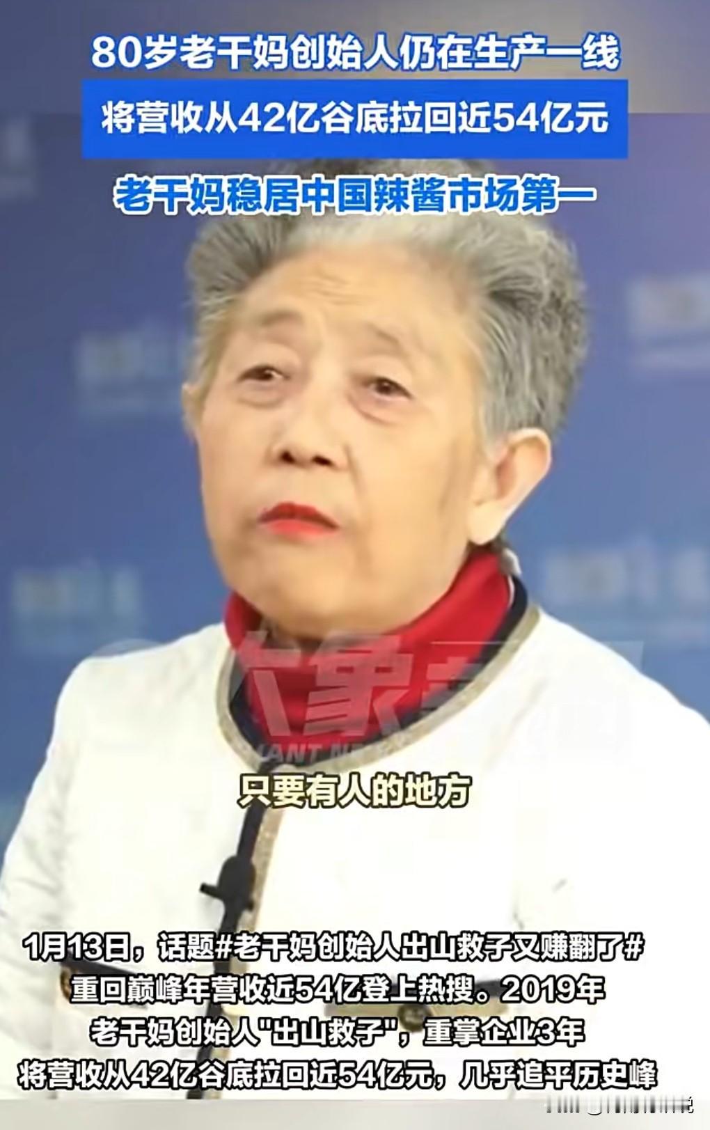 说起这个老干妈呀,那真的是我们那一代人很多人的童年记忆呀!小时候也不算太富裕。很多同学就带了个老干妈,一勺子老干妈就能够解决一顿饭,那真的是太下饭了,这真是很多小学生的下饭神器啊。 近日听说老干妈赚了很多的钱,发展的是越来越好了。 我上一次吃老干妈应该有几年前了,那个辣子确实非常的好吃啊,那个辣子鸡,唉呀,真是记忆犹新啊。 1月13日热搜,80岁老干妈创始人仍在生产一线。 大家发现没有那些上一代的那些企业家,真的非常的勤劳,像什么李嘉诚啊,巴菲特呀,老干妈创始人啊,那么大年纪,仍然为自己的企业而操心。 也许在大企业家的心目中,工作真的是一件非常快乐的事情。 也许脑力工作者确实要比体力工作者要享受。
