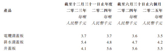 收入占比较少的排水沟盖板、井盖板2025年上半年量价齐跌。其中,排水沟盖板销量1600吨,单价4200元/吨;井盖板销量0.08吨,单价5500元/吨。至此,公司2025年上半年呈现出全产品线降价的态势。