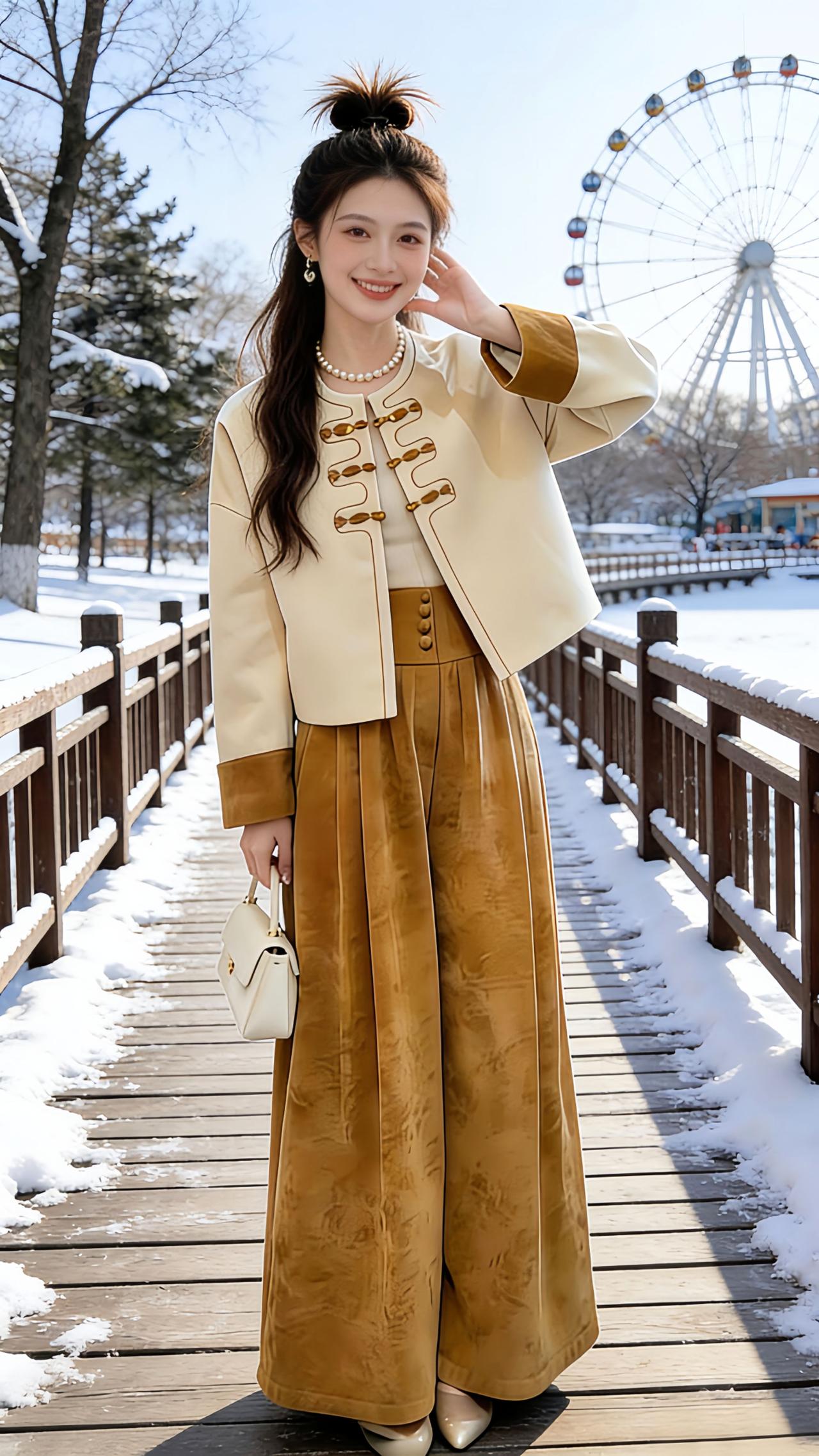 Danny在飘雪的中式窗边挖到这套新中式套装啦~盘扣上衣的复古撞色设计超有韵味,咖调休闲裤垂坠感拉满,指着模特分享的瞬间,把东方雅致揉进了冬日氛围里。走在覆雪木栈道上,摩天轮旁的穿搭身影,让新中式美在雪景里鲜活起来。 软糯面料适配冬日各种场景,半扎丸子头搭配珍珠项链,不管是室内穿搭分享还是户外雪景打卡,这套套装都能轻松打造气质感,秋冬想要氛围感穿搭,选它就对了~ 新中式穿搭 秋冬氛围感穿搭 国风古韵 你永远可以相信东方美学 东方美学被明制汉服拿捏了 @抖加🔥上热门🔥dou+🔥热点宝 @DOU+上热门