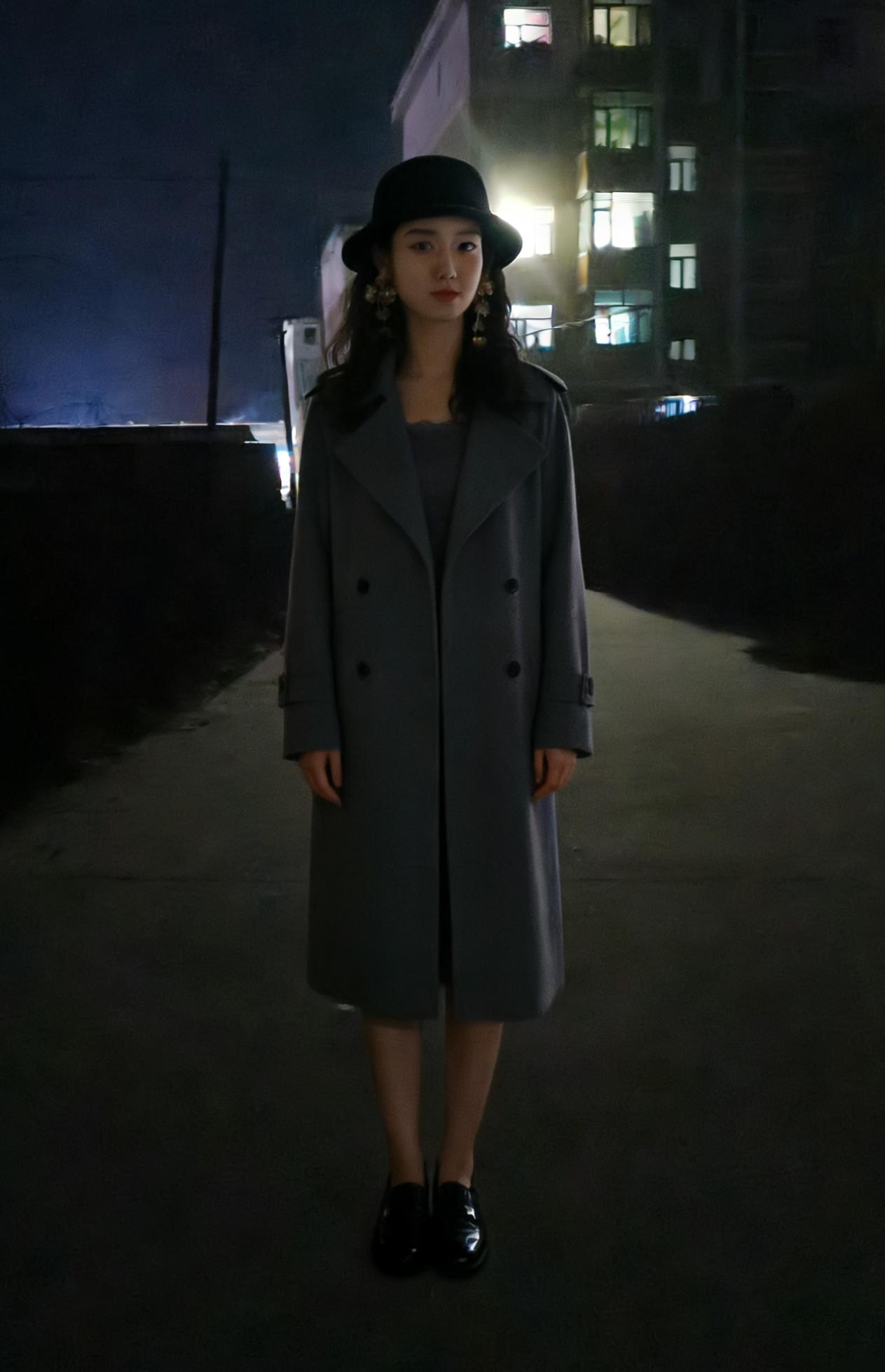 夜色漫城街似练,华灯初上时分。佳人踏雪步轻匀。 貂裘温冷意,羽衣惹芳尘。 眸底星芒藏不住,笑涡轻晕腮痕。冬宵何必怨寒深。 一身皆是景,何必觅东君。