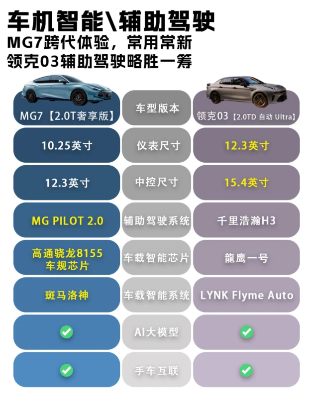 应广大网友要求我扒了下适配的车:MG7 2.0T奢享版和新款领克03 2.0TD Ultra,这两款车市场反馈良好,价格也合适。尤其是MG7最近的升级,真的有点东西。