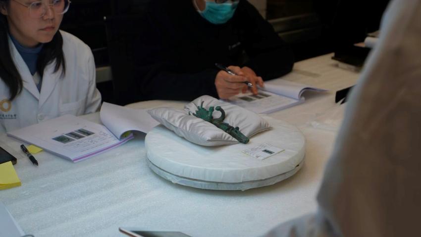 相关文物点交现场。成都金沙遗址博物馆供图