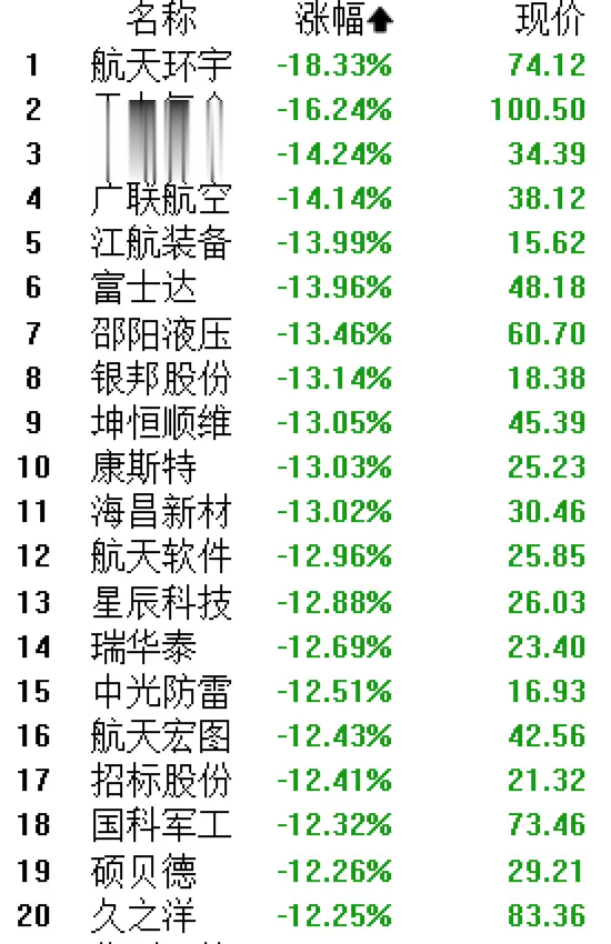 航天智装、铂力特、信维通信这些前期猛涨的票,哐哐往下跌,连千亿巨头中国卫通都直接被摁在了跌停板上。