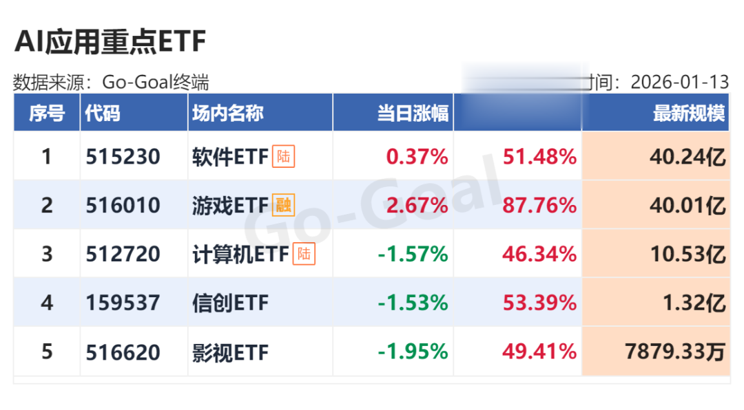 另,这两天AI应用依然关注度比较高,放一下相关ETF,行情为盘中数据,仅供参考~重点关注~~