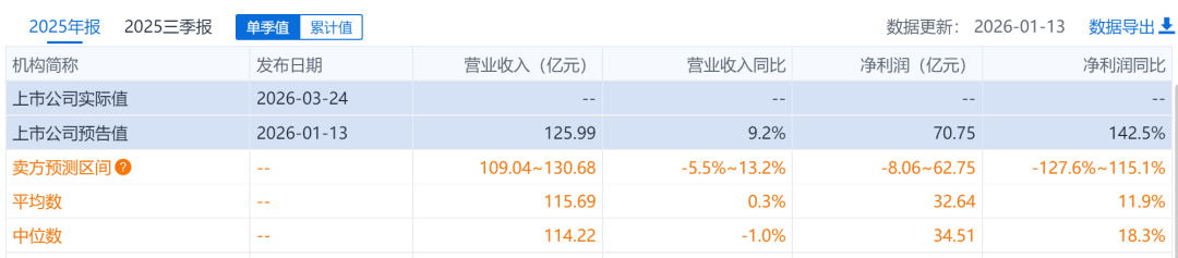 单季度来看,据测算,公司Q4单季净利润预计达70.75亿元,环比增长101%,远超分析师一致预测的32.64亿元,是业绩超预期的关键驱动力。