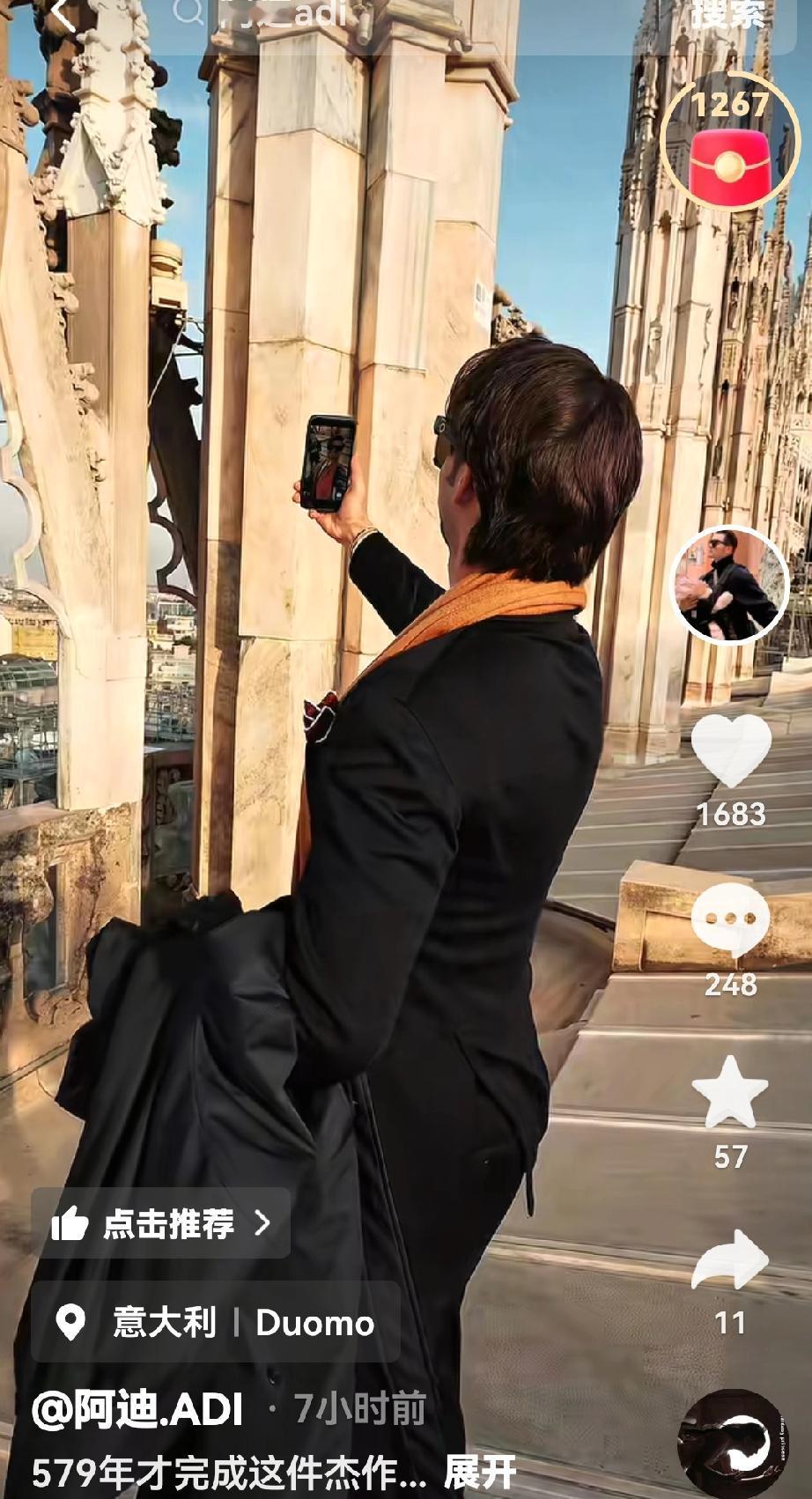 阿迪在意大利旅游,参观米兰教堂,为精雕细琢的匠人精神而震撼。阿迪向往的自由生活,在这里具象化了。盈公主给了阿迪自由,这也是爱一个人的表现。[比心][比心][比心]