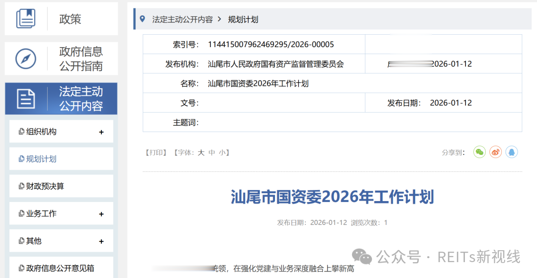 1月12日,《汕尾市国资委2026年工作计划》发布。