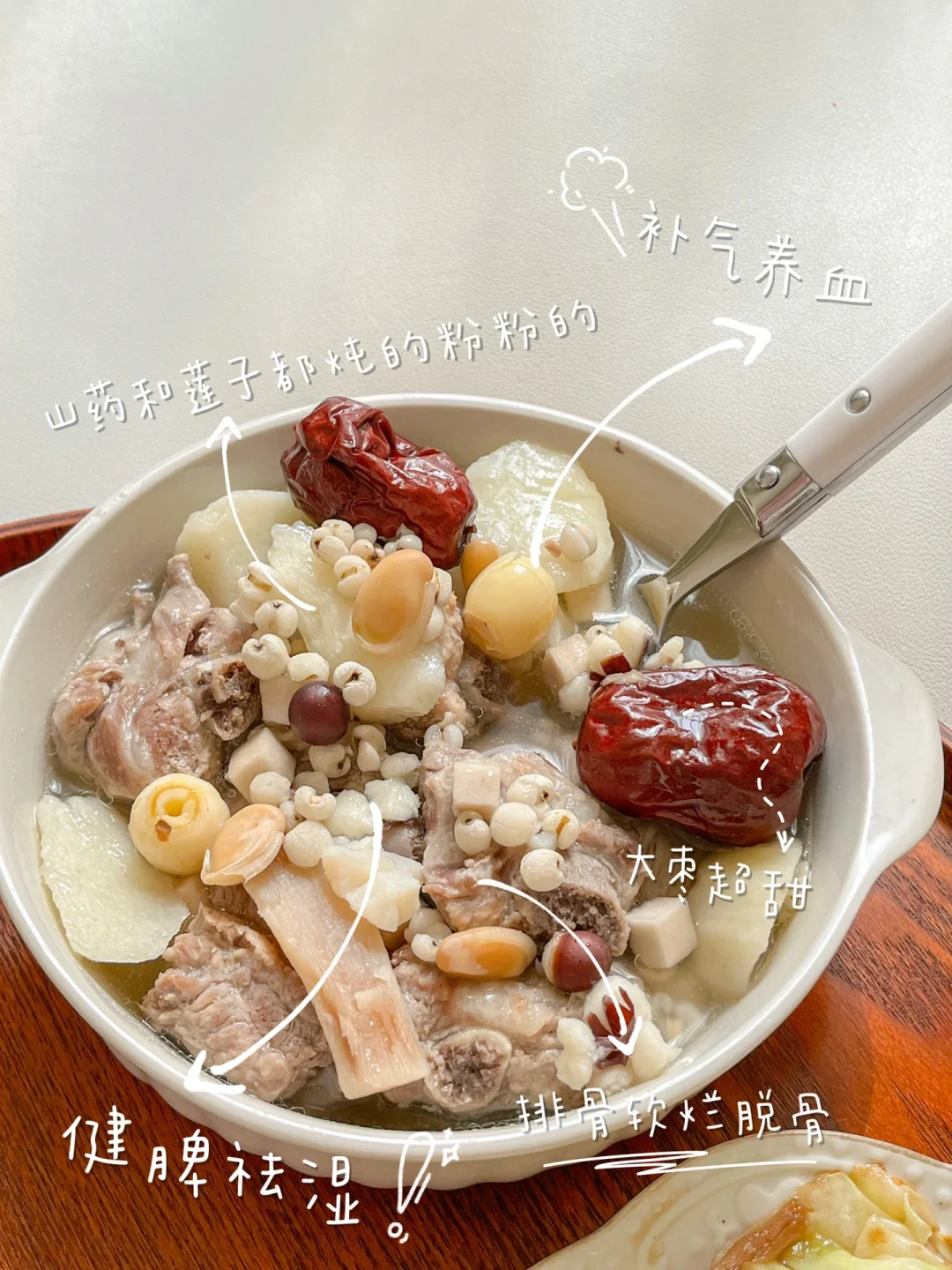 3.排骨转到砂锅,盐、白胡椒调味,加山药炖20分钟,放大枣炖10分钟出锅