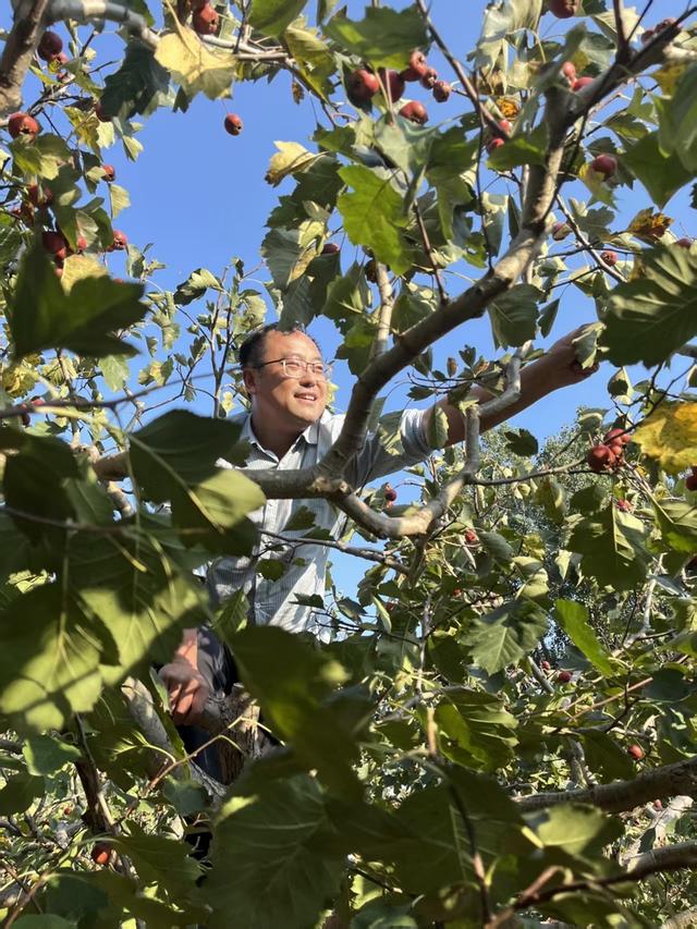 王雪峰帮村民采摘山楂。受访者供图
