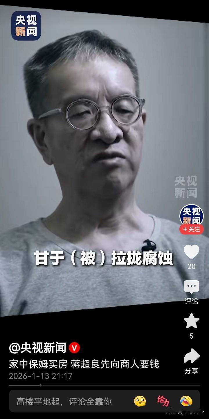 曾主政湖北的蒋超良在央视的纪录片露面了,还特别说到“愧对湖北人民”! 也是,蒋超良曾任中国农业银行董事长,吉林省委副书记、省长,直到到了湖北任省委书记,这才算真正的主政一方吧。只是,后来他又被调任他职,直到2025年2月接受审查调查。 本来,主政一方,当造福一方,湖北人民也是对他充满期待。 不想蒋超良却是通过他的四弟蒋斌良、五弟蒋忠良,和不法商人勾搭在一起,做权钱交易的罪恶勾当,各种项目就这样给到送巨额钱财给他们蒋家的不法商人手里了…… 看了一段话,“2016年,蒋超良就任湖北省委书记,各有所图的人立即蜂拥而至,蒋斌良、蒋忠良很快感受到了大哥作为省委“一把手”带来的巨大含金量”,让人很不是滋味! 这还是在国家已经强力反腐的情况下发生的事情啊,由此也可知蒋超良这些贪腐分子的疯狂,也可知反腐“一步不停歇,半步不退让”的重要性,唯有把权力关进制度笼子,保持高压态势不动摇,有腐必反、有贪必肃、除恶务尽,让腐败分子没有藏身之地…… 如何加大反腐力度