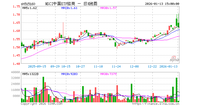 1月13日,MSCI中国ETF招商(515160)跌0.37%,成交额22.49万元。当日份额减少200.00万份,最新份额为2.94亿份,近20个交易日份额减少1000.00万份。最新资产净值计算值为4.78亿元。