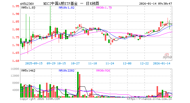 MSCI中国A股ETF基金(512360)业绩比较基准为MSCI中国A股国际指数(MSCIChinaAInternationalIndex)收益率,管理人为平安基金管理有限公司,基金经理为李严,成立(2018-06-15)以来回报为84.35%,近一个月回报为4.57%。