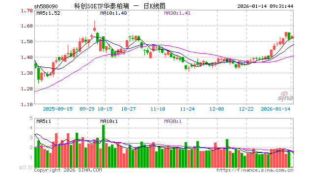 1月14日,科创50ETF华泰柏瑞(588090)开盘涨0.33%,报1.516元。科创50ETF华泰柏瑞(588090)重仓股方面,中芯国际开盘跌0.10%,海光信息涨1.80%,寒武纪涨0.85%,澜起科技涨1.92%,中微公司涨0.57%,联影医疗涨0.02%,金山办公跌0.22%,芯原股份涨0.63%,石头科技涨0.00%,传音控股涨0.31%。