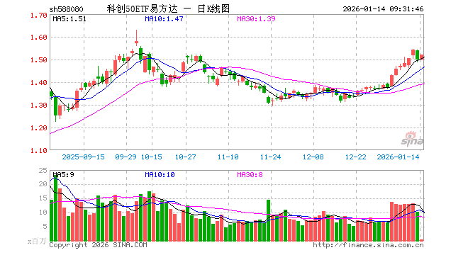 1月14日,科创50ETF易方达(588080)开盘跌0.07%,报1.498元。科创50ETF易方达(588080)重仓股方面,中芯国际开盘跌0.10%,海光信息涨1.80%,寒武纪涨0.85%,澜起科技涨1.92%,中微公司涨0.57%,联影医疗涨0.02%,金山办公跌0.22%,芯原股份涨0.63%,石头科技涨0.00%,传音控股涨0.31%。