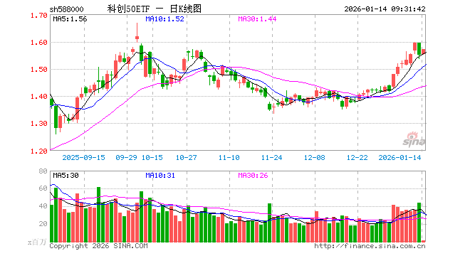 1月14日,科创50ETF(588000)开盘涨0.19%,报1.552元。科创50ETF(588000)重仓股方面,中芯国际开盘跌0.10%,海光信息涨1.80%,寒武纪涨0.85%,澜起科技涨1.92%,中微公司涨0.57%,联影医疗涨0.02%,金山办公跌0.22%,芯原股份涨0.63%,石头科技涨0.00%,传音控股涨0.31%。