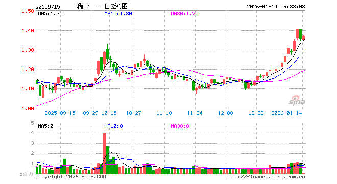 1月14日,稀土ETF易方达(159715)开盘跌0.44%,报1.348元。稀土ETF易方达(159715)重仓股方面,北方稀土开盘跌0.61%,卧龙电驱跌0.41%,领益智造跌0.53%,中国稀土跌1.82%,盛和资源跌0.59%,格林美跌0.69%,金风科技涨1.53%,包钢股份跌0.77%,厦门钨业涨1.10%,中国铝业涨0.93%。