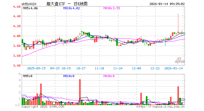 1月14日,超大盘ETF(510020)开盘涨0.30%,报4.057元。超大盘ETF(510020)重仓股方面,寒武纪开盘涨0.85%,海光信息涨1.80%,紫金矿业涨0.97%,中芯国际跌0.10%,恒瑞医药涨0.05%,赛力斯跌0.40%,万华化学跌0.11%,农业银行跌0.39%,中信证券跌0.21%,中国船舶跌0.53%。