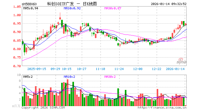 1月14日,科创50ETF广发(588060)开盘涨0.32%,报0.939元。科创50ETF广发(588060)重仓股方面,海光信息开盘涨1.80%,中芯国际跌0.10%,寒武纪涨0.85%,澜起科技涨1.92%,中微公司涨0.57%,联影医疗涨0.02%,金山办公跌0.22%,芯原股份涨0.63%,石头科技涨0.00%,传音控股涨0.31%。