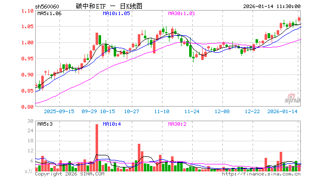 1月14日,截止午间收盘,碳中和ETF(560060)涨1.99%,报1.076元,成交额407.41万元。碳中和ETF(560060)重仓股方面,宁德时代截止午盘跌0.22%,紫金矿业涨2.07%,长江电力涨0.26%,比亚迪涨0.22%,阳光电源涨4.16%,万华化学涨0.66%,汇川技术涨1.86%,洛阳钼业涨3.64%,亿纬锂能涨2.64%,隆基绿能涨2.49%。