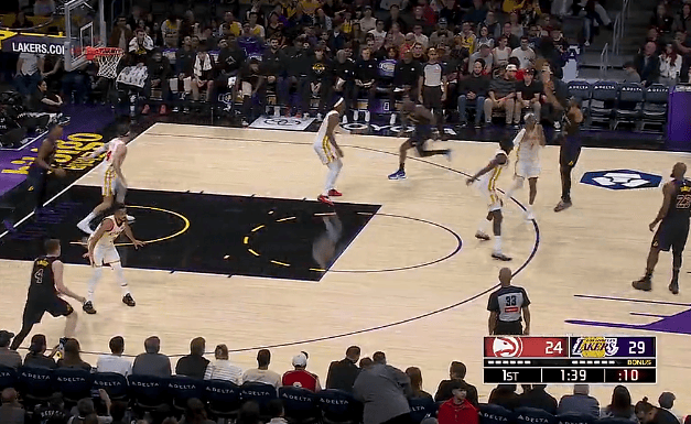 虎扑01月14日讯NBA常规赛,湖人对阵老鹰的比赛正在进行中。