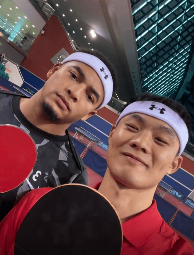 刘若钒社媒晒出自己和蒋光太组队的照片,并表示:乒乓球双打比赛惜败。