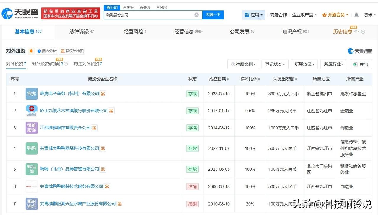 【鸭鸭羽绒服涉多起买卖合同纠纷 鸭鸭羽绒服近期被丝芭传媒起诉 鸭鸭羽绒服对外投资7家企业 鸭鸭羽绒服商业版图盘点】鸭鸭羽绒服回应衣服双标双码 据媒体报道,近日,有消费者反映,网购了一件鸭鸭羽绒服,收到货后,发现一件衣服上有两个疑似商标的标识,且标记的尺码还不一样。对此,鸭鸭羽绒服品牌方回应称,消费者反映的情况,并非两个商标,而是一个设计元素标识和一个商标。至于尺码不一致的问题,已第一时间作为典型案例通报相关部门,今后将加强自查自纠自检,严格生产流程。 天眼查工商信息显示,鸭鸭羽绒服关联公司鸭鸭股份公司成立于2000年5月,法定代表人为樊继波,注册资本1.05亿人民币,经营范围包括羽毛(绒)及制品制造、家居用品制造、家用纺织制成品制造等。股东信息显示,该公司由浙江鸭鸭控股集团有限公司全资持股。对外投资信息显示,该公司对外投资7家企业,其中5家处于存续状态,包括宸虎电子商务(杭州)有限公司、江西维雅服饰有限责任公司、共青城市鸭鸭网络科技有限公司等。天眼风险显示,该公司曾多次因买卖合同纠纷、服务合同纠纷等被起诉。值得一提的是,去年12月,该公司因著作权权属、侵权纠纷,被上海丝芭文化传媒集团有限公司起诉。 天眼查信息: