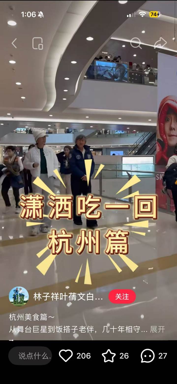 社交媒体的内容显示,两位加起来超过140岁的“百岁山组合”,已经来到杭州,并且“潇洒吃一回”。