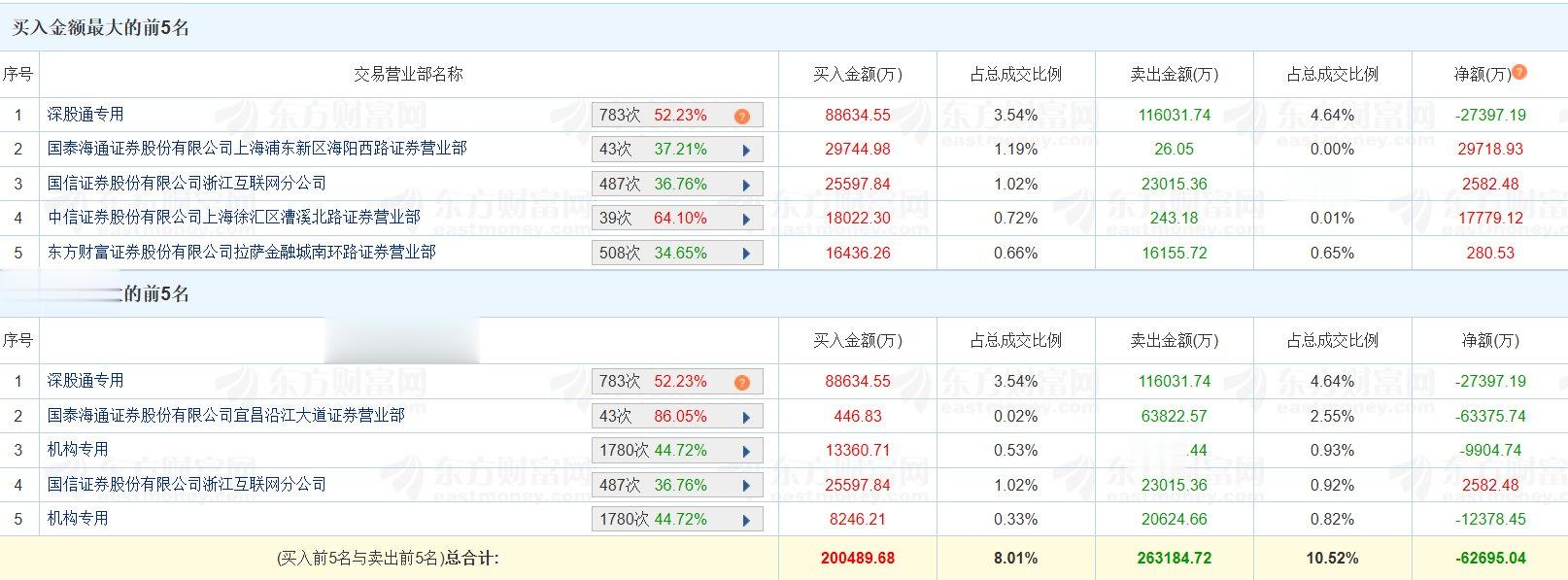 格隆汇1月14日|岩山科技(002195.SZ)今日涨停,录得8天6板,换手率34.47%,成交额250.19亿元。龙虎榜数据显示,深股通买入8.86亿元,卖出11.6亿元,净卖出2.74亿元;两家机构买入2.16亿元,卖出4.39亿元,净卖出2.23亿元;游资“消闲派”位列卖二席位,净卖出6.34亿元;“章盟主”位列买二席位,净买入2.97亿元。上榜席位全天买入20.05亿元,卖出26.32亿元,合计净卖出6.27亿元。(格隆汇)