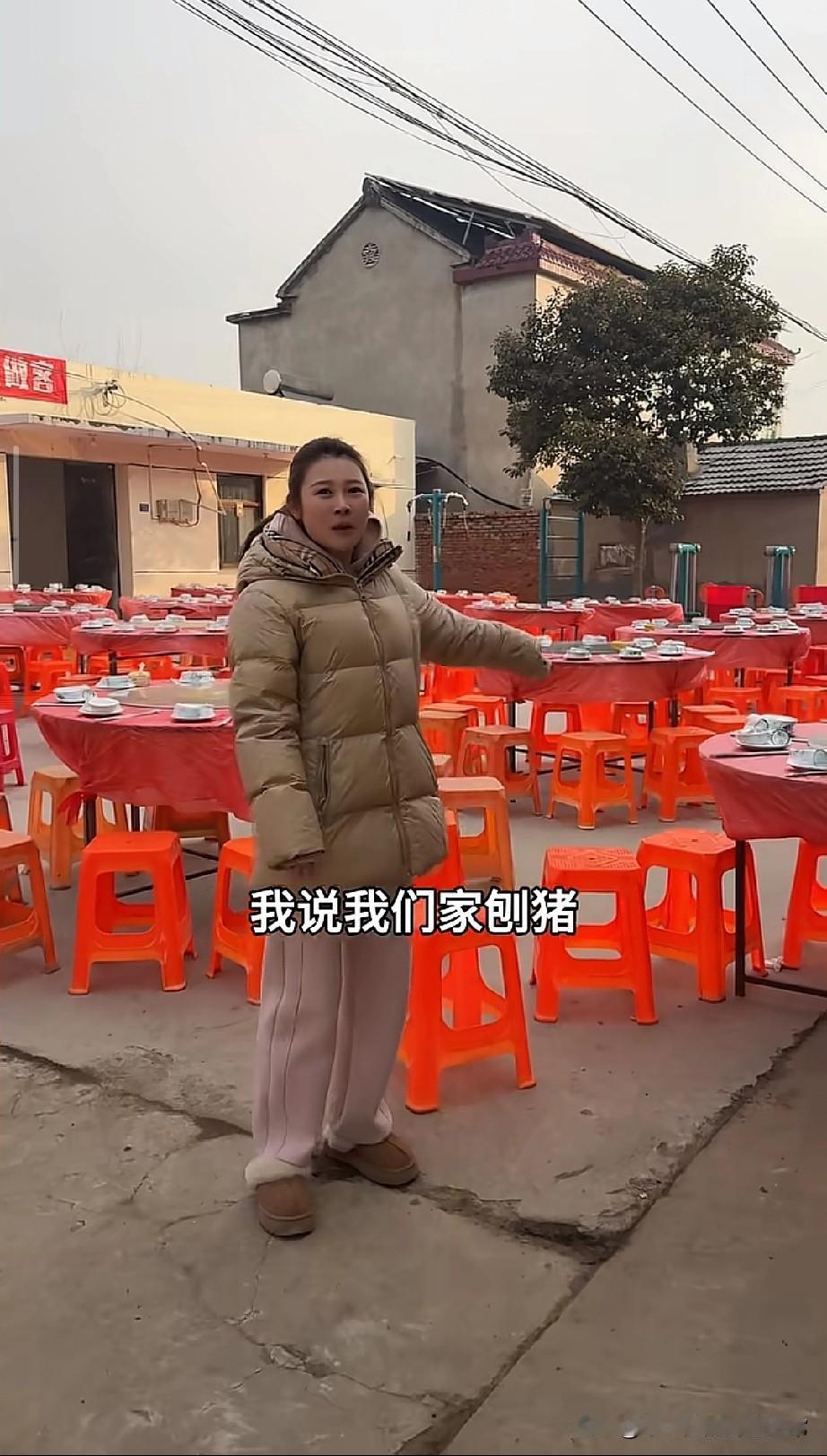 为当网红办百桌刨猪宴,娘家亲戚却集体缺席 为了拍视频博眼球当网红,大姐张罗着办刨猪宴,豪气喊娘家来100多桌客人,红桌橙凳摆了满院,大厨的大锅菜炖得咕嘟响,戏台子也搭得有模有样,结果亲戚一个没到,大姐站在空院子里急得直喊“闯祸了”。 如今不少人想靠农村生活、乡土宴席出圈,为了流量硬造场面,可这种脱离实际的摆拍,不仅浪费食材和人力,还落得个尴尬收场。本想借着刨猪宴的热闹涨粉,反倒成了村里人的笑谈。 你觉得为了当网红搞这种铺张的场面戏,哪怕闹笑话也值得一试吗?