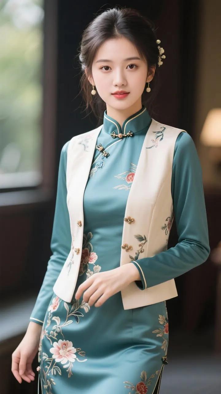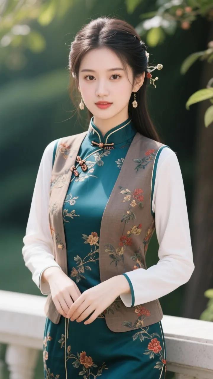 优雅旗袍少女,古典与现代的完美融合💚👗💇♀️