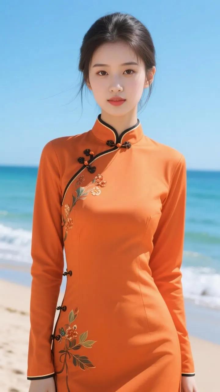 橘裳旗袍韵自来暖橘色旗袍似揽入了秋阳的温软,立领衬得脖颈线条清雅,素雅白边