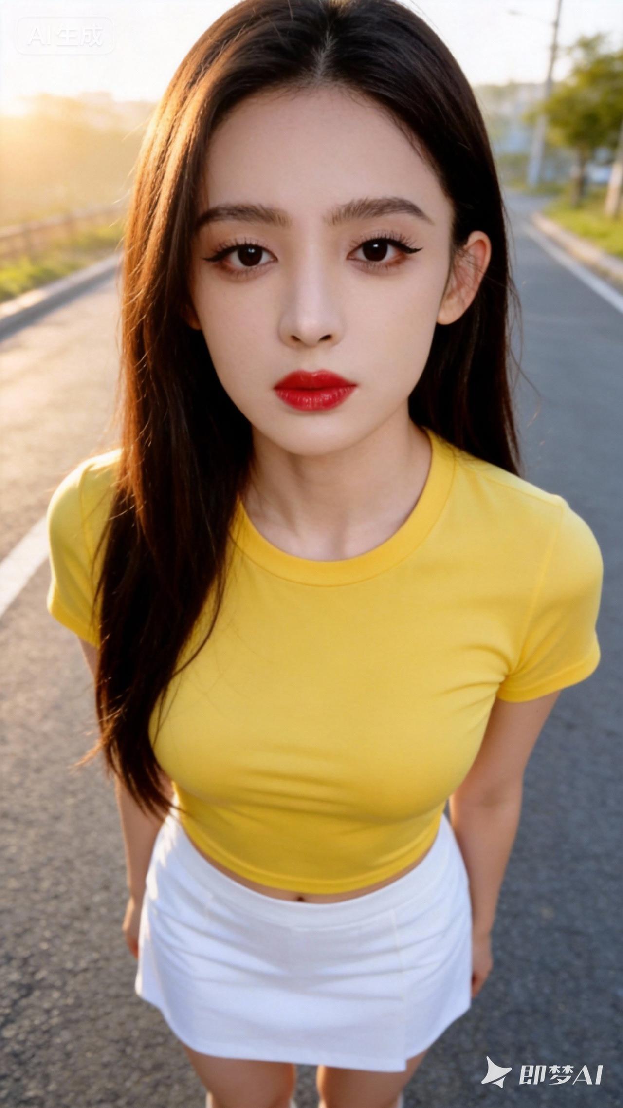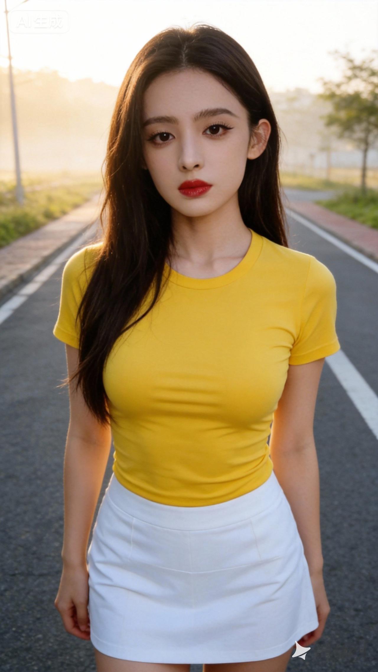夏日清新穿搭,黄色上衣+白色短裙,元气满满!🌞👗👗