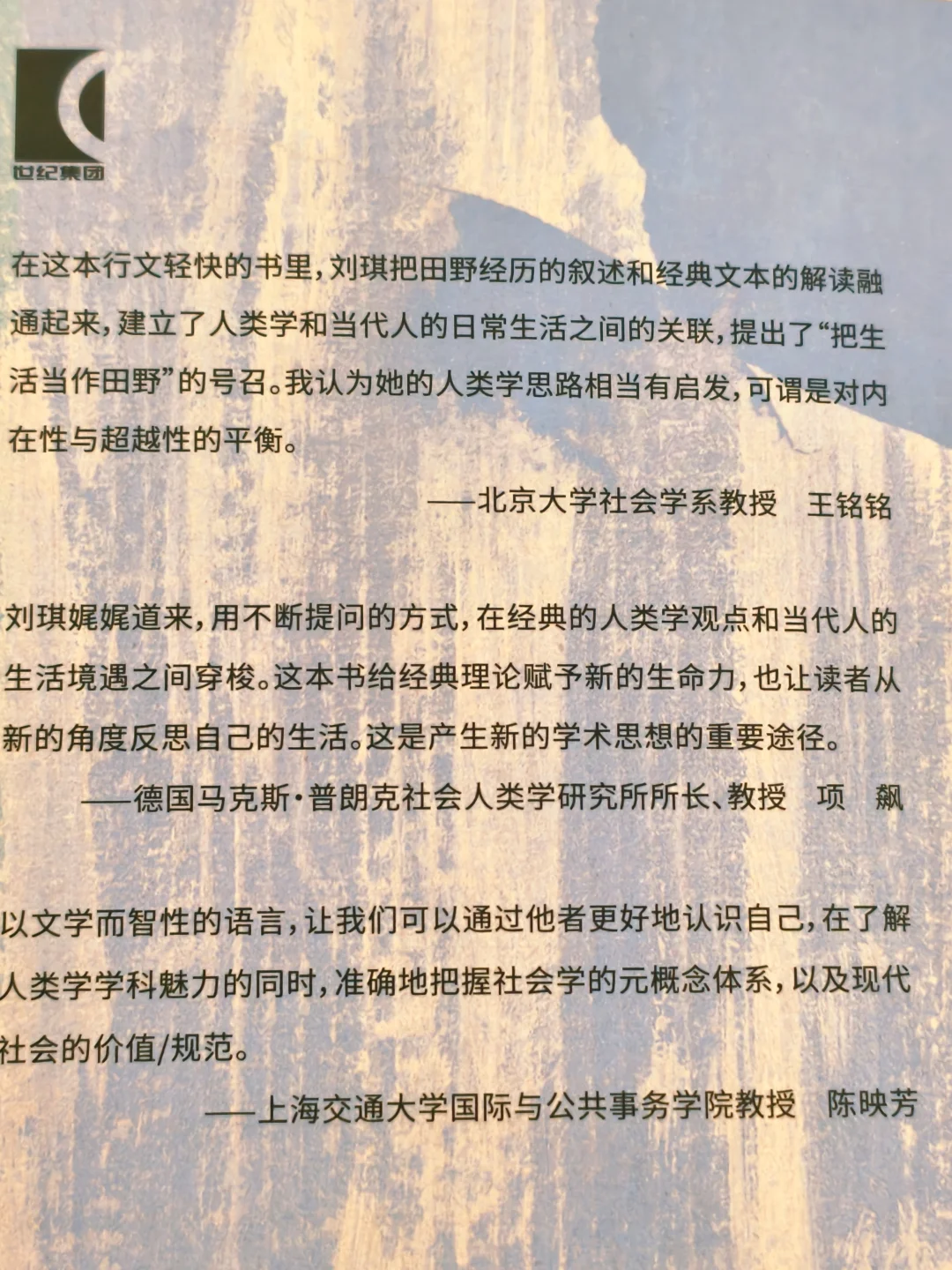 刘琪的独特之处,在于她将田野经历的叙述和经典文本的解读融通起来,建立了人类学和当代人的日常生活之间的关联,提出了“把生活当做田野”的号召。