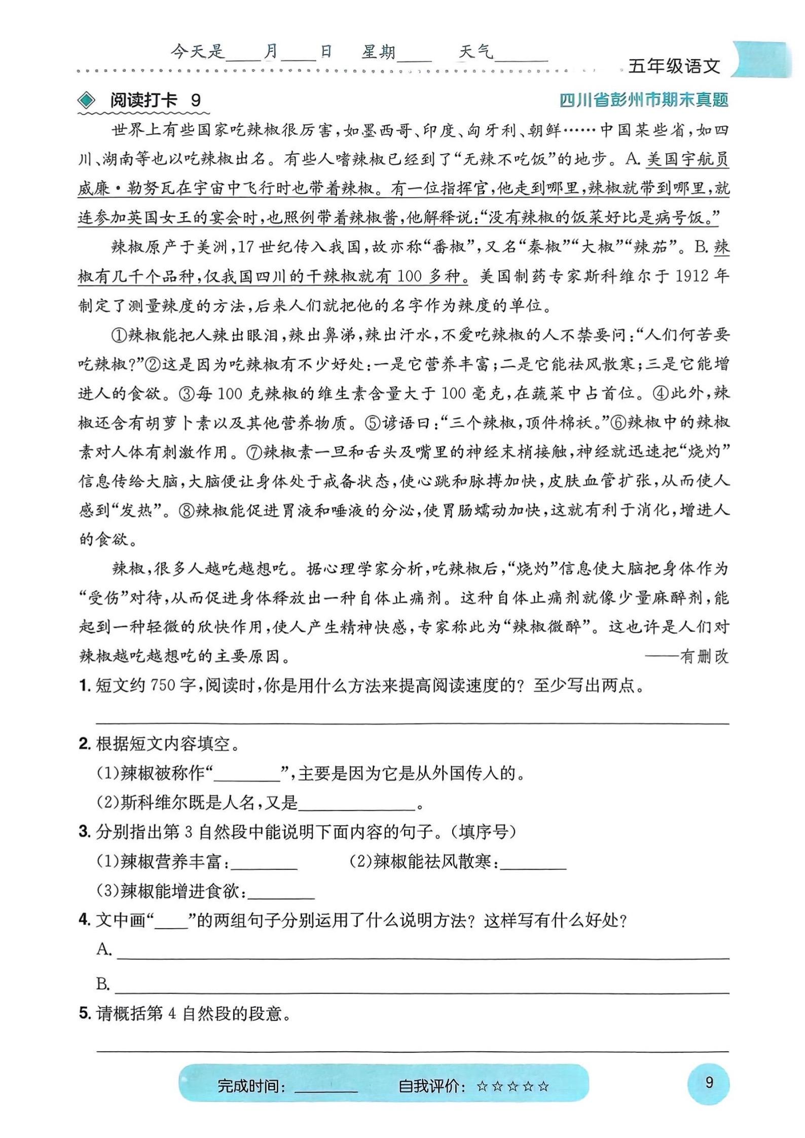 2026年春小学五年级语文阅读寒假作业。 八方文印店。有需要可...