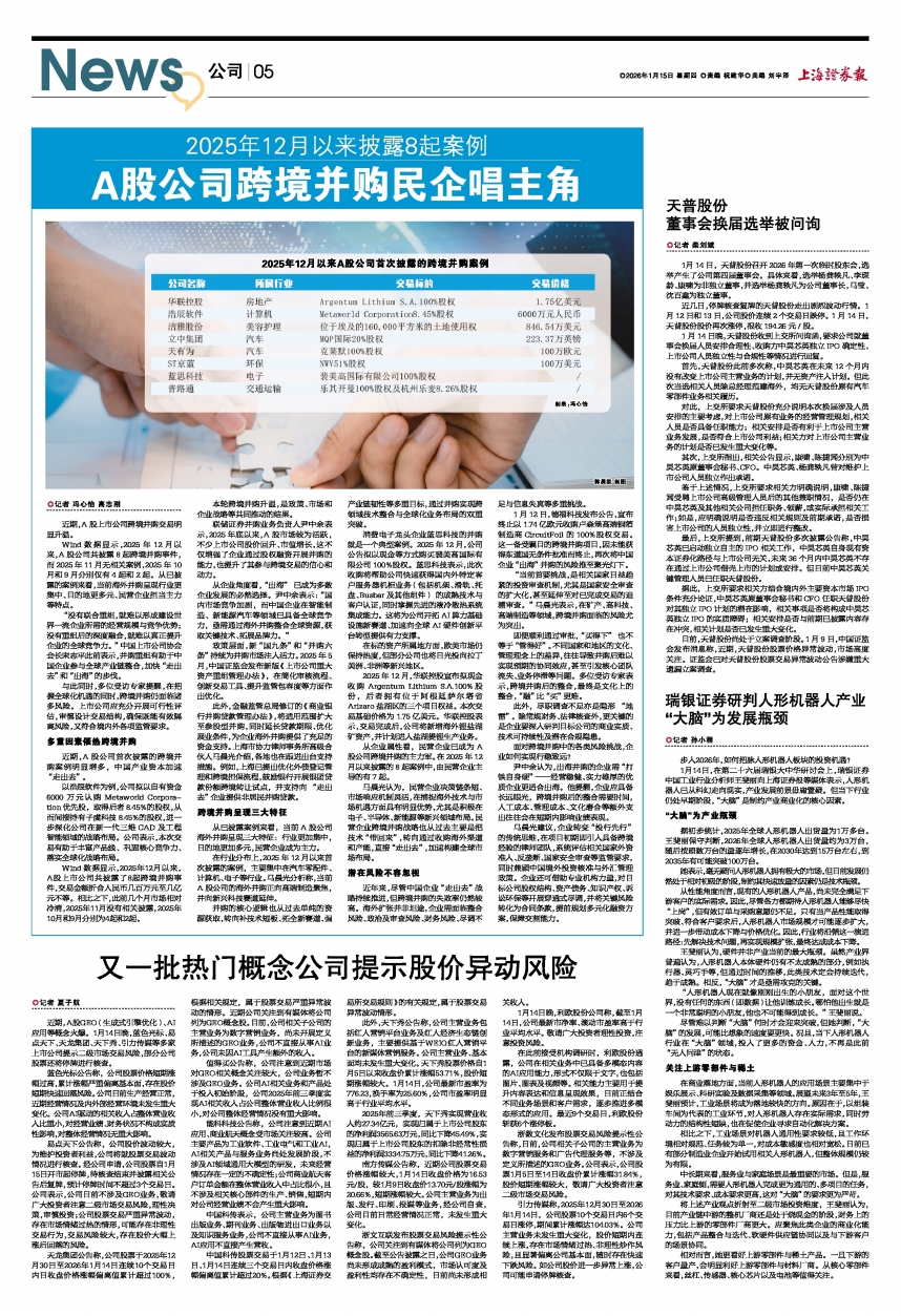 联储证券并购业务负责人尹中余表示,2025年底以来,A股市场较为活跃,不少上市公司股价回升、市值增长,这不仅增强了企业通过股权融资开展并购的能力,也提升了其参与跨境交易的信心和动力。
