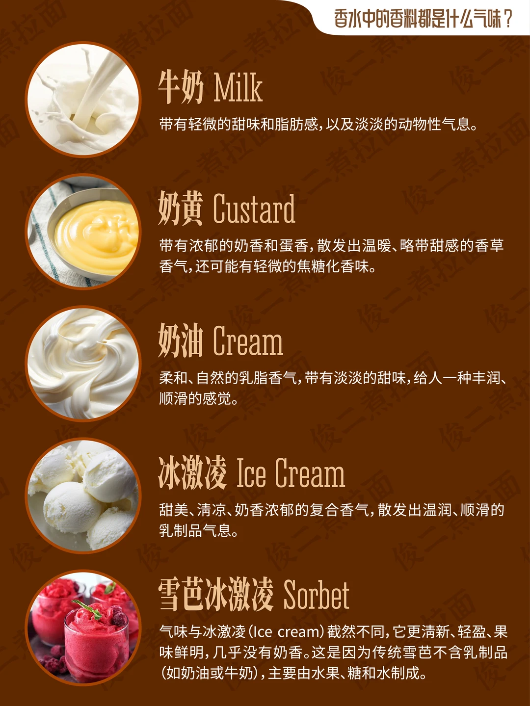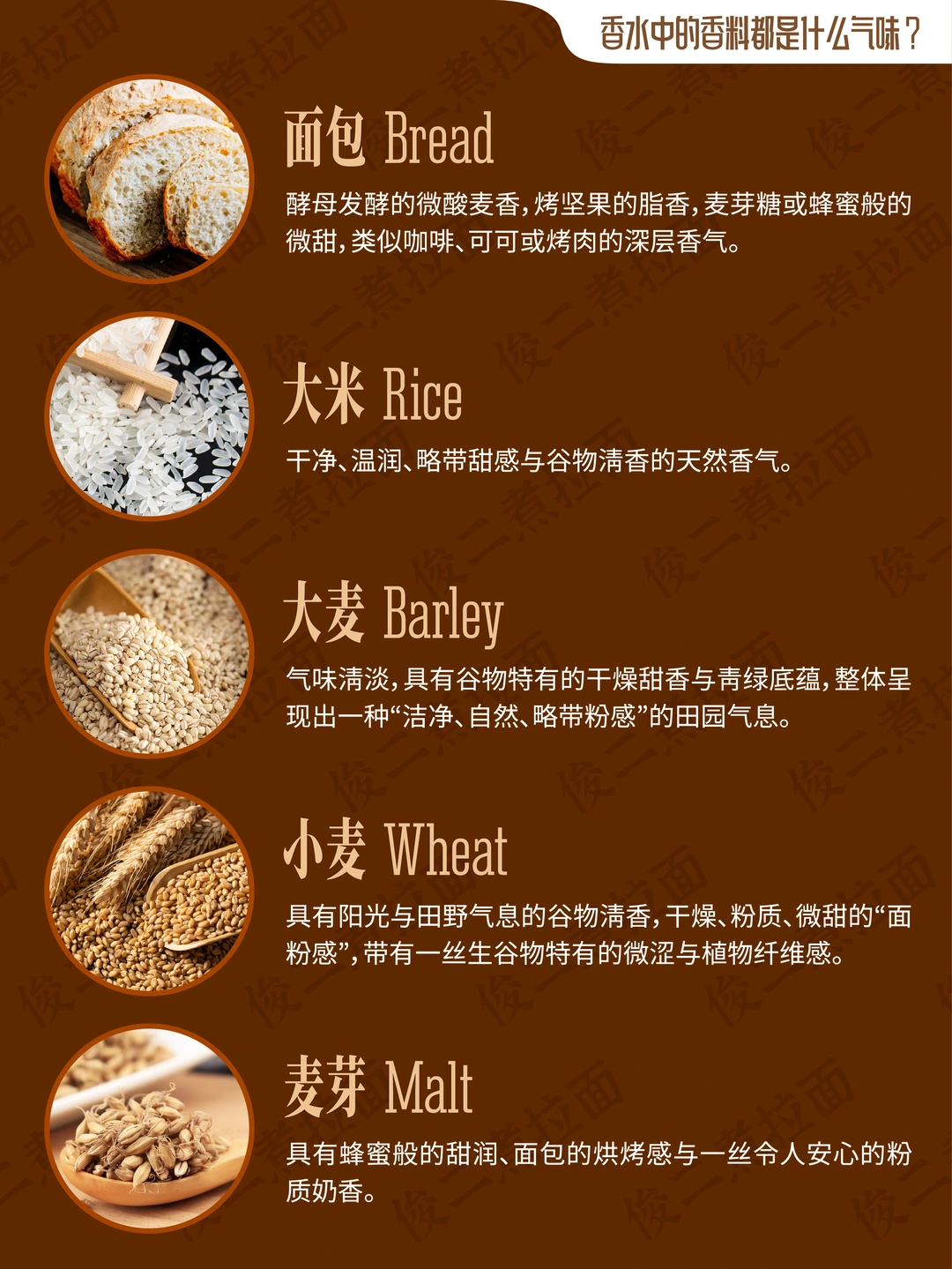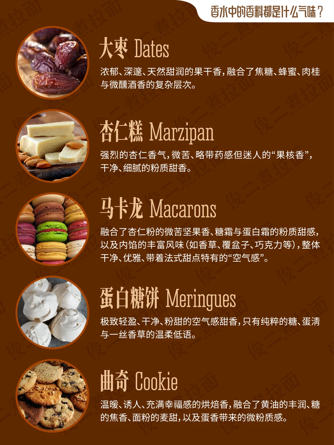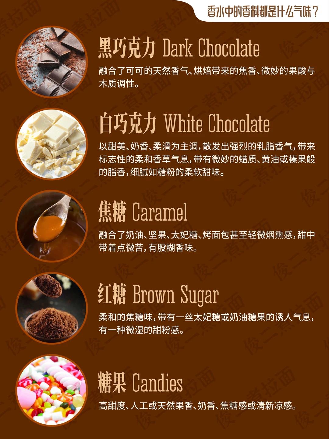 本期香料名录: 榛子 核桃 杏仁 香草 咖啡 牛奶 奶黄 奶油 冰激凌 雪芭冰激凌 黑巧克力 白巧克力 焦糖 红糖 糖果 棉花糖 棉花软糖 果仁糖 太妃糖 牛轧糖 泡泡糖 土耳其软糖 枫糖浆 蜜饯·果脯 爆米花 黄油 姜饼 饼干 杯型蛋糕 法式焦糖布丁 面包 大米 大麦 小麦 麦芽 大枣 杏仁糕 马卡龙 蛋白糖饼 曲奇 茶叶 抹茶 马黛茶 伯爵茶 茉莉花茶 苦艾酒 朗姆酒 莫吉托 干邑白兰地 红酒 白葡萄酒 香槟 威士忌 杜松子酒 烈酒 .