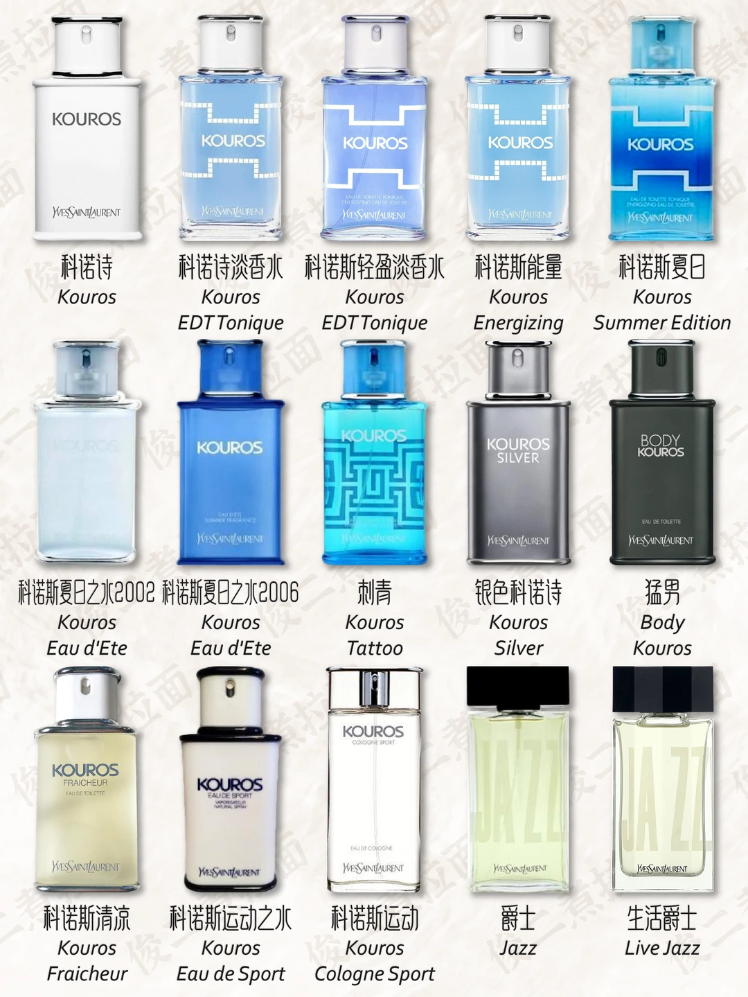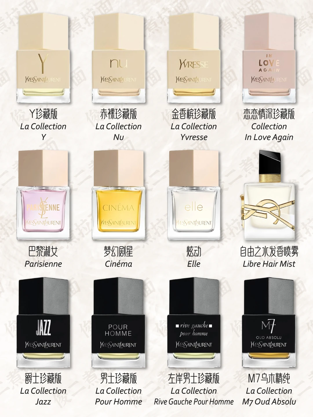 [流汗R] 自1964年 YSL 推出以其名字中第一个英文字母“Y”命名的女性香水,YSL 从此与香水结缘。脍炙人口的“圣罗兰鸦片”(YSL Opium)于1977年 Yves Saint Laurent 到中国旅行后推出的香水,他深受中国文化感动,从鼻烟壶的造型得到灵感,酝酿了暗香浮动、富有浓厚的东方神秘色彩的鸦片(YSL Opium),这也是首次突破传统命名的香水,推出后举世轰动,至今仍居世界香水排名前列;YSL Kouros 香水更添男性阳刚、健康的气息;YSL Paris 香水诉说着时尚之都巴黎及巴黎女子的温柔与浪漫。