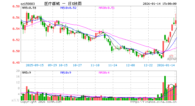 1月14日,医疗器械ETF(159883)涨1.09%,成交额6.39亿元。当日份额增加4.16亿份,最新份额为113.37亿份,近20个交易日份额增加31.92亿份。最新资产净值计算值为62.76亿元。