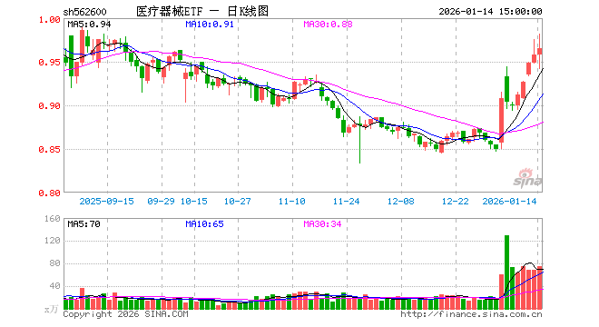 1月14日,医疗器械ETF(562600)涨0.73%,成交额7237.49万元。当日份额增加2700.00万份,最新份额为6.16亿份,近20个交易日份额增加2.29亿份。最新资产净值计算值为5.92亿元。