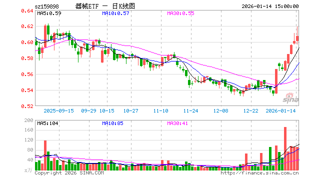 1月14日,医疗器械指数ETF(159898)涨1.00%,成交额5607.89万元。当日份额减少1000.00万份,最新份额为16.23亿份,近20个交易日份额增加7.90亿份。最新资产净值计算值为9.84亿元。