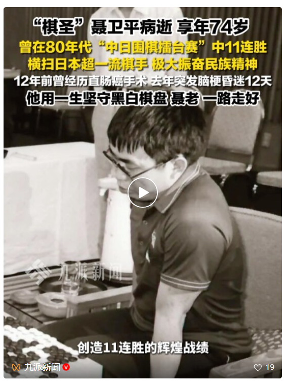1月15日,柯洁发文悼念:聂老一路走好。