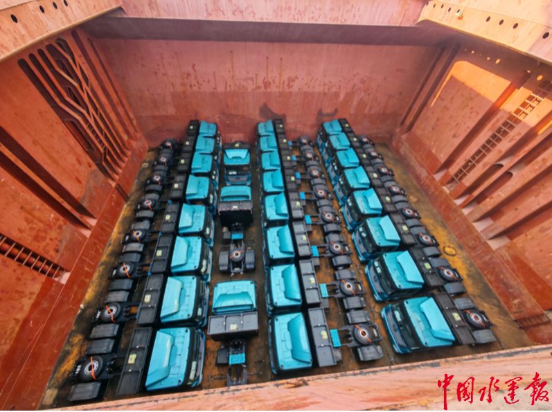 1月12日,在青岛海事局执法人员的全程监管与保障下,装载201辆国产新能源牵引车的“泽*”轮顺利完成装船作业,从青岛大港港区鸣笛启航,驶向海外市场。这是2026年1月以来青岛大港港区最大批量国产新能源汽车海运出口。