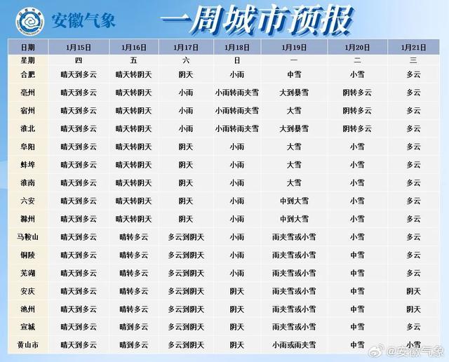 来看安徽省气象台最新预报: