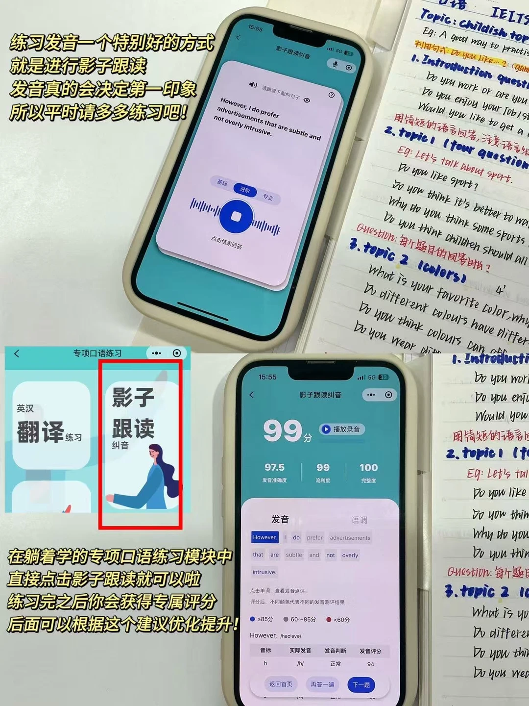 4.常规问题可以利用躺着学进行开口练+批改复盘