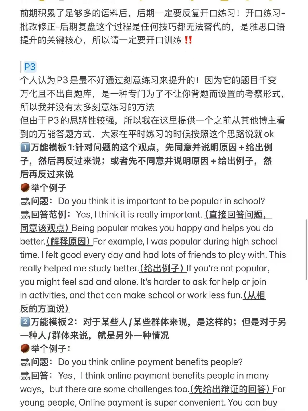 3️⃣口语Part3:可以选择使用两个万能模板,辩证双向地进行回答