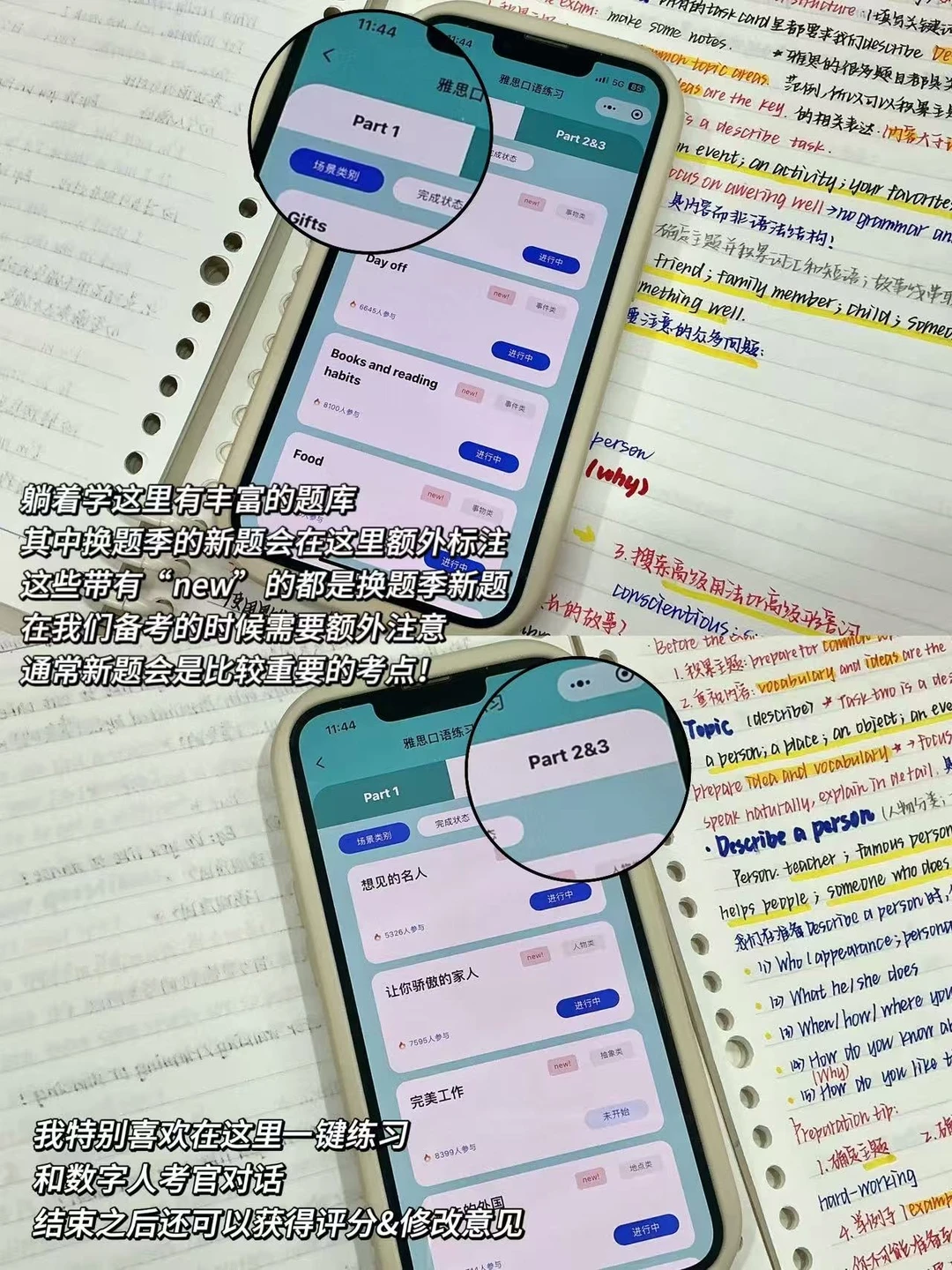 1️⃣当季口语题库与躺着学小程序:纸质版可以在上找到,电子版可以在躺着学小程序上查看,里面收录的口语题库都特别全,很适合我们拿过来直接练习用👋