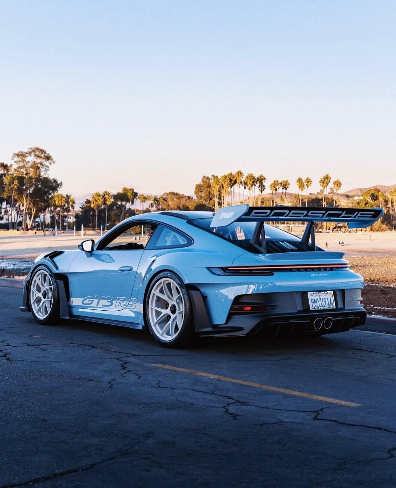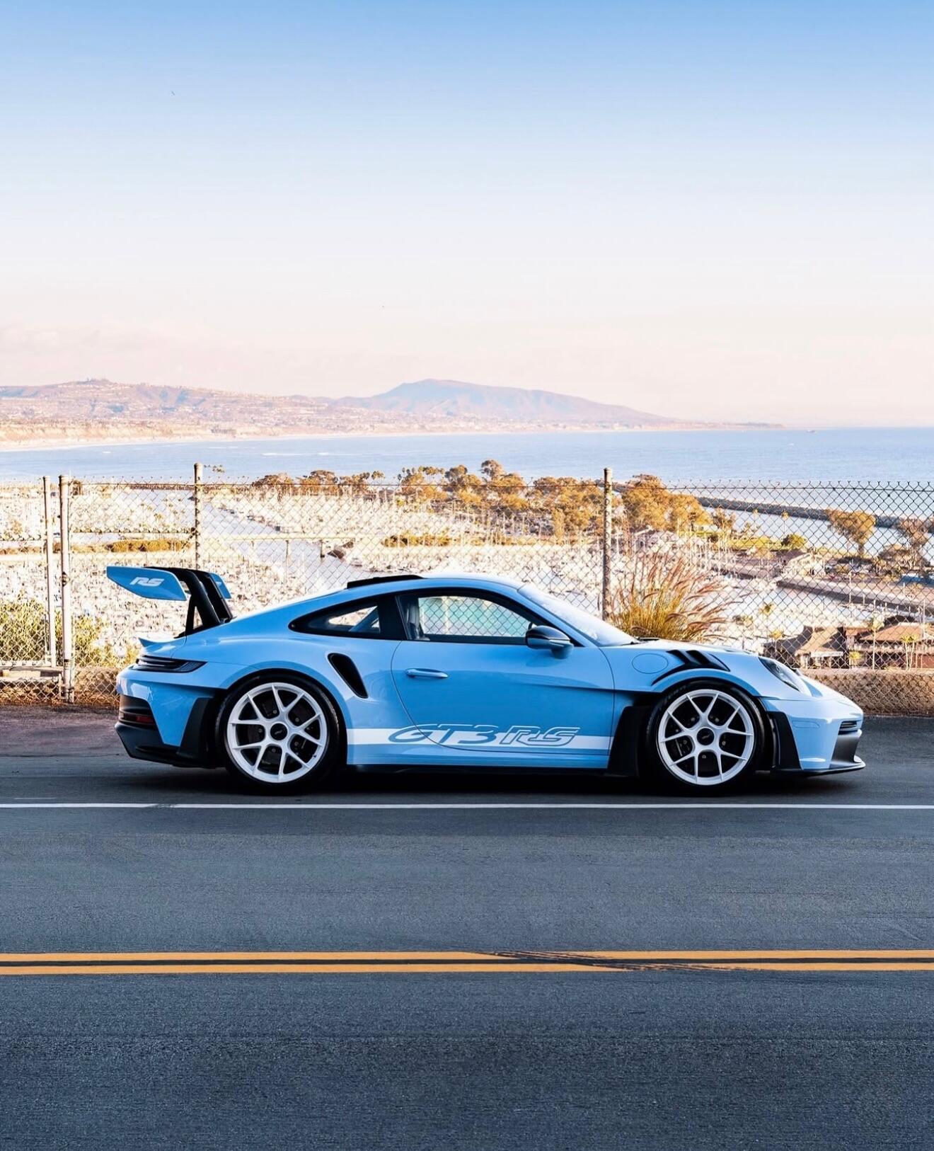 【勒芒的蓝色遗产—Gulf Blue 992 GT3 RS】这款车是保时捷赛道性能的终极象征,而海湾蓝涂装则为其赋予了深厚的历史传承与视觉冲击力。911 (992) GT3 RS 是 992 代 911 家族中专注于赛道性能的巅峰车型。它并非简单的 GT3 升级版,而是一台几乎将整个赛车技术(来自 911 GT3 R 赛车)直接搬上公路的机器。其开发目标只有一个:创造无可比拟的单圈速度和驾驶体验。“海湾蓝” 并非 992 GT3 RS 的标配颜色,而是一种特殊涂装或客户定制选项。其意义远超颜色本身:起源:源自 Gulf Oil(海湾石油公司) 的经典企业色。在 1960-70 年代的勒芒 24 小时耐力赛等经典赛事中,搭载海湾石油涂装的福特 GT40 和保时捷 917 等赛车取得了传奇般的胜利,尤其是史蒂夫·麦昆主演的电影《勒芒》让其深入人心。配色方案:经典的“海湾涂装”是 天蓝色(Gulf Blue)搭配亮橙色 条纹。在 992 GT3 RS 上,通常表现为车身主色为海湾蓝,在车门、前盖等部位饰以橙色赛车条纹和拉花,轮毂也常采用橙色点缀。象征意义:选择这个涂装,意味着车主不仅购买了一台最快的保时捷,更是在向赛车运动的黄金时代致敬,表明这是一台为赛道而生的速度机器。驾驶感受:这是一台需要驾驶者全神贯注的机器。它在公路上可能显得有些“紧张”和硬核,但在赛道上,其精准的转向、强大的抓地力、线性的动力输出和极高的宽容度,能给予顶级驾驶者无与伦比的信心和乐趣。竞争对手:几乎独占一个细分市场。最接近的对手可能是 法拉利 488 Pista / SF90(但后者是涡轮/混动),或更硬核的 兰博基尼 Huracán STO,但 GT3 RS 的独特之处在于其纯粹的赛车工程理念和保时捷的日常可用性传承。价格与稀有度:作为顶级性能车型,其售价远高于普通 GT3,且通常需要严格的配额审核。加上“海湾蓝”等特殊涂装,使其成为收藏家和顶级爱好者的终极目标,保值率极高。保时捷 911 (992) GT3 RS “海湾蓝” 不仅仅是一辆蓝色的跑车,它是两个传奇的结合体:工程的传奇:代表了保时捷将赛车技术公路化的最高水平,是内燃机时代赛道性能的标杆。历史的传奇:“海湾蓝”涂装承载了赛车运动最辉煌年代的记忆与荣耀。选择这个组合,意味着车主拥有了一台速度机器,同时也拥有了一件流动的、有灵魂的艺术品和历史纪念品。它是对驾驶纯粹性最高敬意的表达。