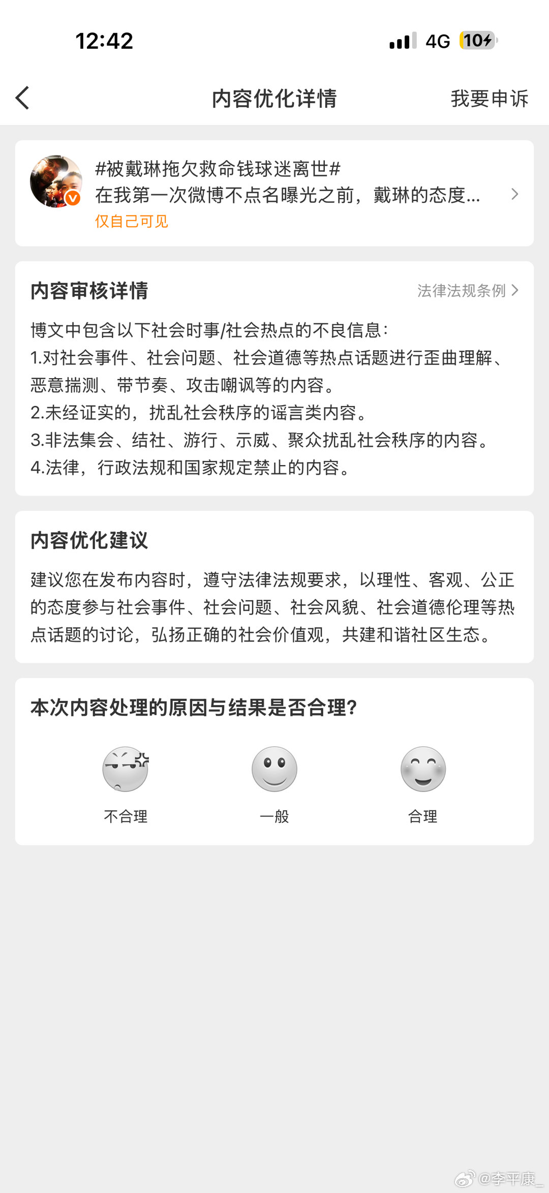 潘硕带着委屈不甘离开人世一个多月了,这个事热度过了,戴琳可能觉得大家快要忘了这事了,开始暗戳戳搞事情了… 这条曝光他辱骂潘硕聊天记录的微博居然被投诉下架了… 平台咋回事我也懒得管,申诉我也懒得申,但是戴琳这么不知悔改,看来还得接着征集受害者一起维权!