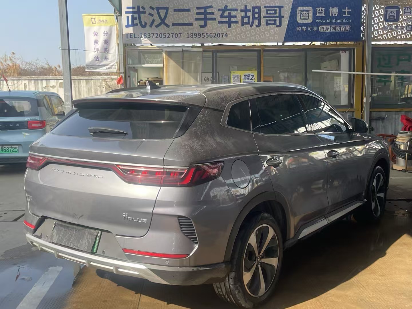 待会儿有老家朋友来看车,先简单冲洗下,然后做一个精洗。22年差几天的比亚迪宋plus,纯电续航505,旗舰版,8万公里,四条马牌轮胎,保险年审费用到今年的12月。原车主武汉科技大学的老师,相当爱惜,城区通勤。整车6年或者15万公里的质保,带L2级别的辅助驾驶。 武汉·一号车市