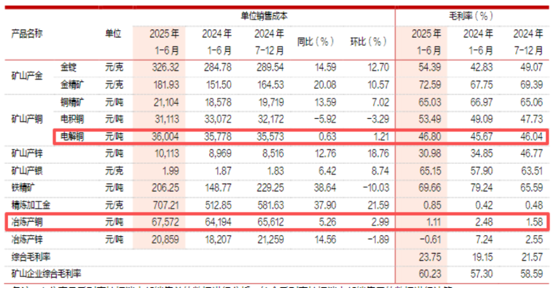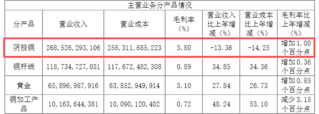 其财报中并未对自产矿、外采矿进行细分,但2024年阴极铜整体的毛利率也只有3.8%。